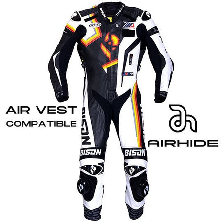 The Bison Thor.2 motorcycle racing suit is built specifically for you, from measurements to design and will accommodate popular air vests today. Thor.2 motorcycle racing suits are available as a fully featured one-piece pro-level race suit or street-centric 2-piece suit and feature a slew of ergonomic and safety features.