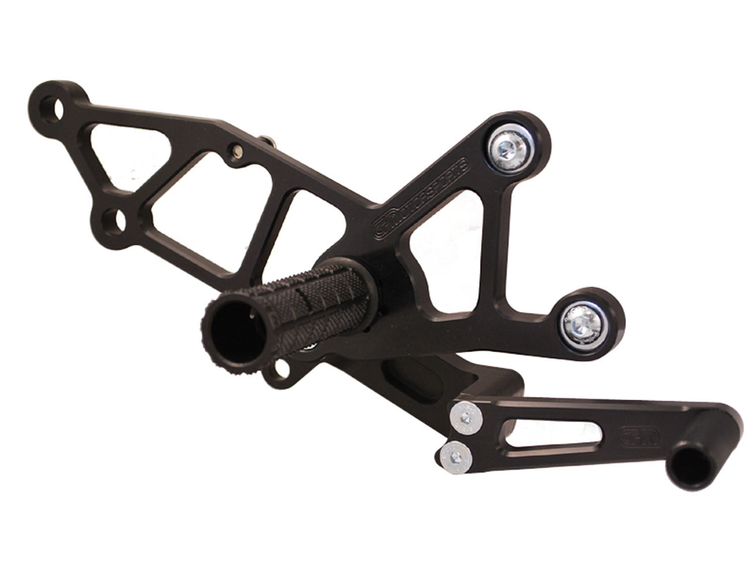 - Woodcraft rearset kits offer eccentric foot and toe pegs for adjustability (where applicable).