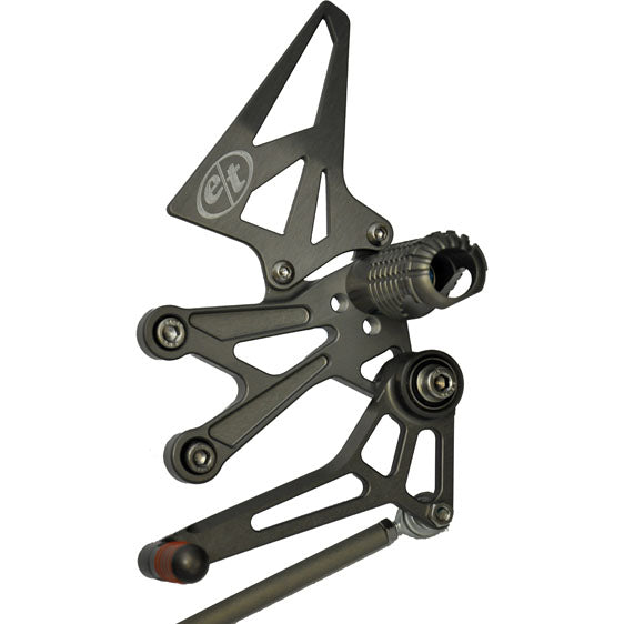 Configurable for standard or GP shift with no additional hardware required. Compatible with stock and aftermarket exhaust systems. Elevate your racecraft with Evol Technology Pro Rearsets for the Kawasaki Ninja 250/300.