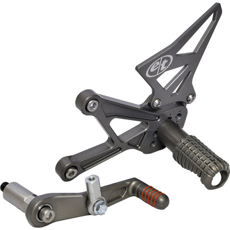 Compatible with stock quick shift sensor and available in GP or Standard shift pattern configuration. We even offer a plug-in module to enable GP shifting with the stock, unmodified ECU — contact us for pricing and to order. Compatible with stock and aftermarket exhaust systems. Elevate your racecraft with Evol Technology Pro Rearsets for the Kawasaki Ninja ZX10-R.