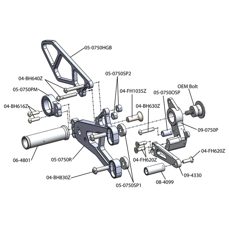OEM Parts: Woodcraft rearsets assume you are replacing OEM rearsets. This kit may or may not utilize some OEM components - see exploded drawings and instructions for further details.