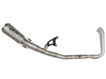 Spark Exhaust Systems. Spark system is the state-of-the-art product developed together with teams racing important championships all over the world. Besides the study of the collectors' best sizing for performance optimization, the technologies and the structural details of such product ensure top reliability. In fact, many teams have chosen Spark to face the Endurance World Championship. From the aesthetic point of view the segmented connecting tube is striking, with visible weldings enhancing the racing soul of the product. Weldings, segments and cones that are not merely a formal exercise but necessary solutions: after repeated bench tests such specific cones - out of the production standards - have been chosen as they allow the best torque. Handcrafted in Italy. Ultra lightweight approximately 2.2kg.