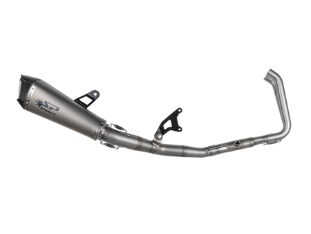 Spark Exhaust Systems. Spark system is the state-of-the-art product developed together with teams racing important championships all over the world. Besides the study of the collectors' best sizing for performance optimization, the technologies and the structural details of such product ensure top reliability. In fact, many teams have chosen Spark to face the Endurance World Championship. From the aesthetic point of view the segmented connecting tube is striking, with visible weldings enhancing the racing soul of the product. Weldings, segments and cones that are not merely a formal exercise but necessary solutions: after repeated bench tests such specific cones - out of the production standards - have been chosen as they allow the best torque. Handcrafted in Italy. Ultra lightweight approximately 2.2kg.