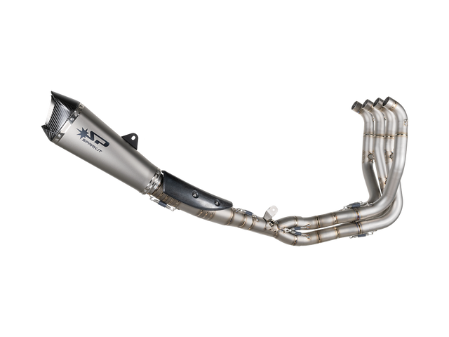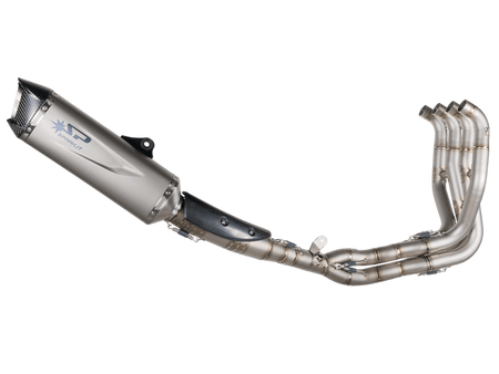 Spark Exhaust Systems. Spark system is the state-of-the-art product developed together with teams racing important championships all over the world. Besides the study of the collectors' best sizing for performance optimization, the technologies and the structural details of such product ensure top reliability. In fact, many teams have chosen Spark to face the Endurance World Championship. From the aesthetic point of view the segmented connecting tube is striking, with visible weldings enhancing the racing soul of the product. Weldings, segments and cones that are not merely a formal exercise but necessary solutions: after repeated bench tests such specific cones - out of the production standards - have been chosen as they allow the best torque. Handcrafted in Italy. Ultra lightweight approximately 2.2kg.