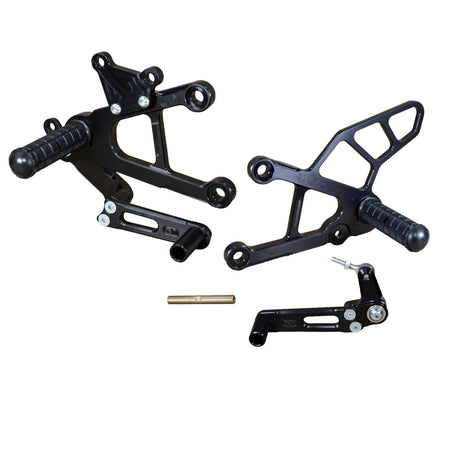 - Woodcraft rearset kits offer eccentric foot and toe pegs for adjustability (where applicable).