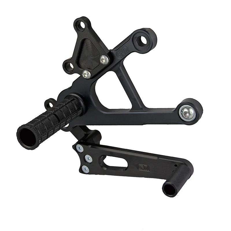 This kit is designed for the 2019 ZX6R to give you the optimum foot position and ground clearance for racing. This kit is upgradeable at any time to accept the CFM 3 piece billet shift pedal.