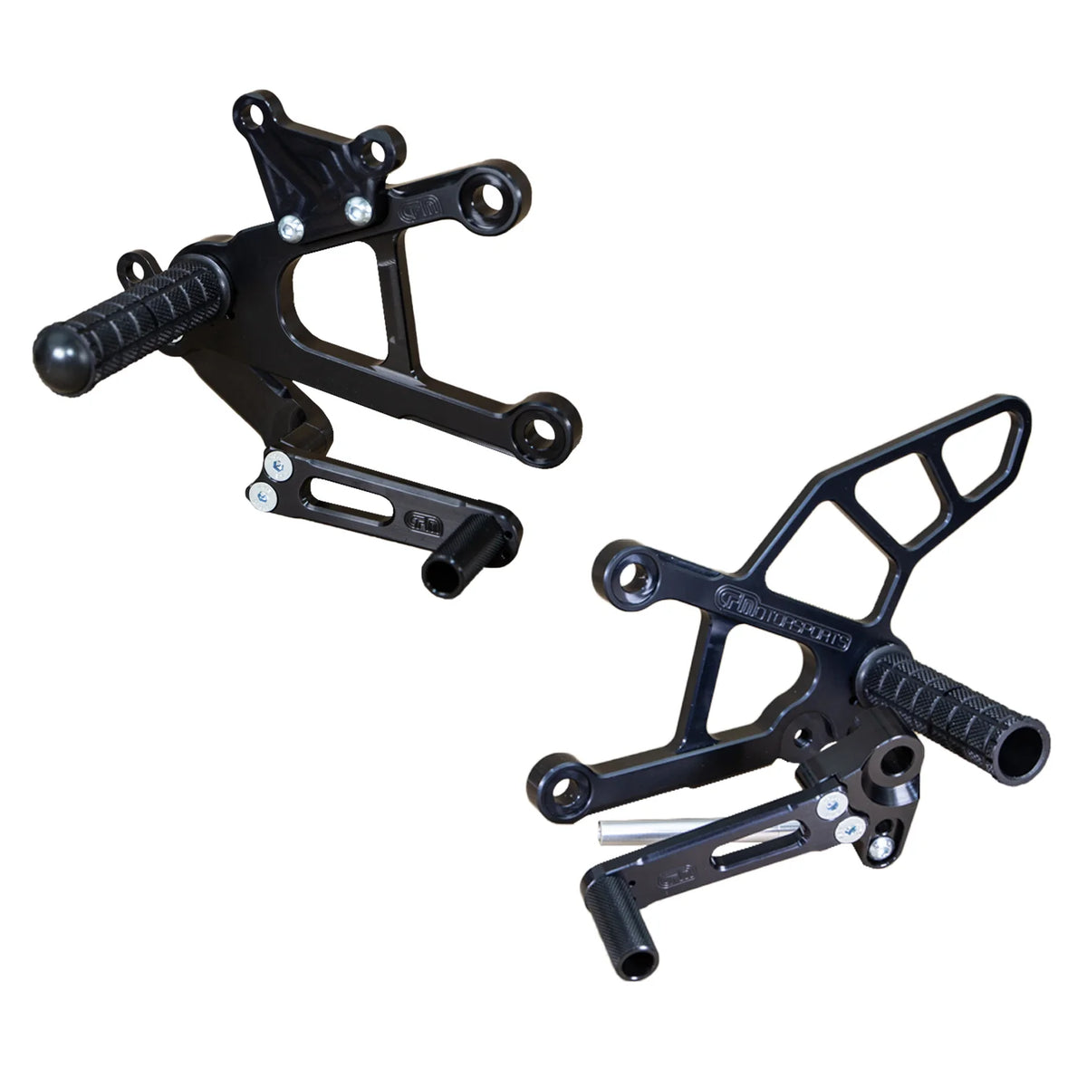 - Woodcraft rearset kits offer eccentric foot and toe pegs for adjustability (where applicable).