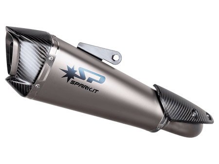Spark Exhaust Systems. Spark system is the state-of-the-art product developed together with teams racing important championships all over the world. Besides the study of the collectors' best sizing for performance optimization, the technologies and the structural details of such product ensure top reliability. In fact, many teams have chosen Spark to face the Endurance World Championship. From the aesthetic point of view the segmented connecting tube is striking, with visible weldings enhancing the racing soul of the product. Weldings, segments and cones that are not merely a formal exercise but necessary solutions: after repeated bench tests such specific cones - out of the production standards - have been chosen as they allow the best torque. Handcrafted in Italy. Ultra lightweight approximately 2.2kg.