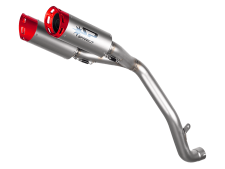Spark Exhaust Systems. Spark system is the state-of-the-art product developed together with teams racing important championships all over the world. Besides the study of the collectors' best sizing for performance optimization, the technologies and the structural details of such product ensure top reliability. In fact, many teams have chosen Spark to face the Endurance World Championship. From the aesthetic point of view the segmented connecting tube is striking, with visible weldings enhancing the racing soul of the product. Weldings, segments and cones that are not merely a formal exercise but necessary solutions: after repeated bench tests such specific cones - out of the production standards - have been chosen as they allow the best torque. Handcrafted in Italy. Ultra lightweight approximately 2.2kg.