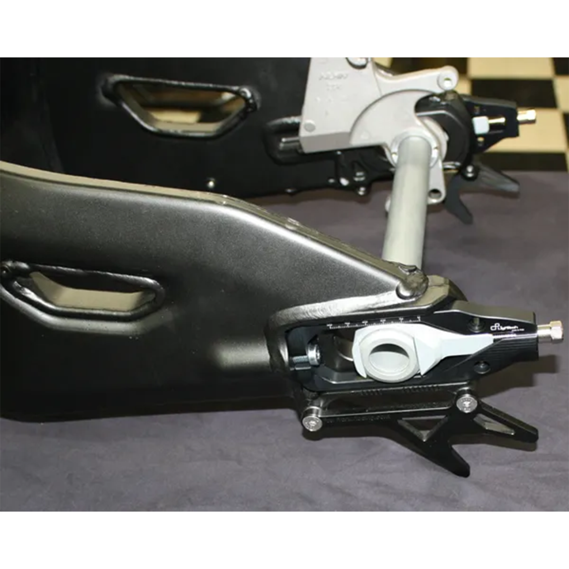 Can be pre-built with Lightech Chain Adjusters and comes using OEM caliper bracket or changed to an underslung caliper bracket