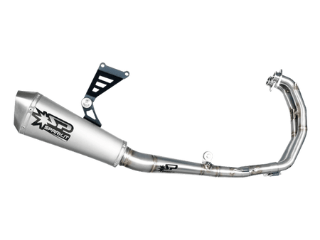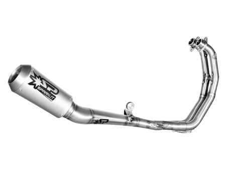 Spark Exhaust Systems. Spark system is the state-of-the-art product developed together with teams racing important championships all over the world. Besides the study of the collectors' best sizing for performance optimization, the technologies and the structural details of such product ensure top reliability. In fact, many teams have chosen Spark to face the Endurance World Championship. From the aesthetic point of view the segmented connecting tube is striking, with visible weldings enhancing the racing soul of the product. Weldings, segments and cones that are not merely a formal exercise but necessary solutions: after repeated bench tests such specific cones - out of the production standards - have been chosen as they allow the best torque. Handcrafted in Italy. Ultra lightweight approximately 2.2kg.