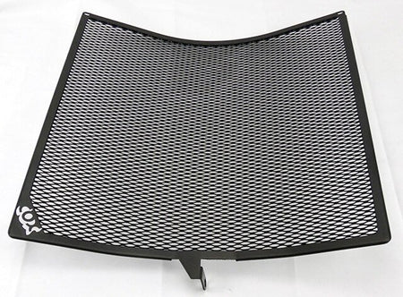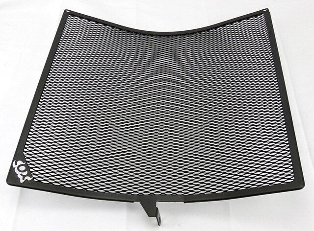 Our Radiator Guards are engineered so they are manufactured without welding. Frames are cut from a sheet of .060 5051 aluminum. The screen is .034 expanded aluminum. Then we hard anodize every one for a chip-free, tough finish! To mount this guard, Zip tie it to the upper radiator straps and bolt to the lower radiator mount using the existing fastener.