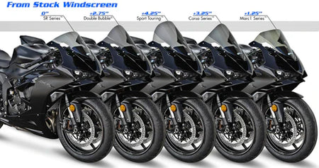 Corsa Series® screens feature a taller bubble that allows even larger riders more wind protection when tucked in at speed. Corsa Series® windscreens are pre-drilled to factory specs and can be used with O.E.M. and or Zero Gravity® well nut kits.